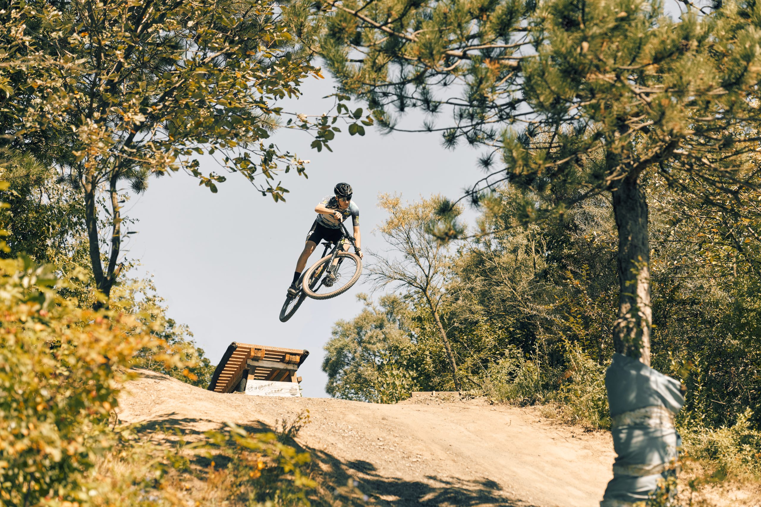 Der blaue Trail wird eigentlich von niemandem gefahren und ist dementsprechend auch eher schlecht gepflegt. Als klassischer Natur-Trail ist er aber dennoch gut fahrbar. Jedoch kann es hier auch mal vorkommen, dass manch ein Biker den Weg als Bergauf-Variante nutzt. Der rote Trail wird wohl am häufigsten befahren und ich gebe zu, dass ich hier ohne Protektoren klar underdressed war. Zwar kann man die heftigsten Sprünge auch immer umfahren, aber dann macht der Trail auch nur bedingt Spaß. Wenn Ihr Euer Bike entsprechend beherrscht und die notwendige Ausrüstung habt, werdet Ihr hier sehr viel Spaß in der Luft haben. Die schwarze Variante ist dann noch eine Spur heftiger.