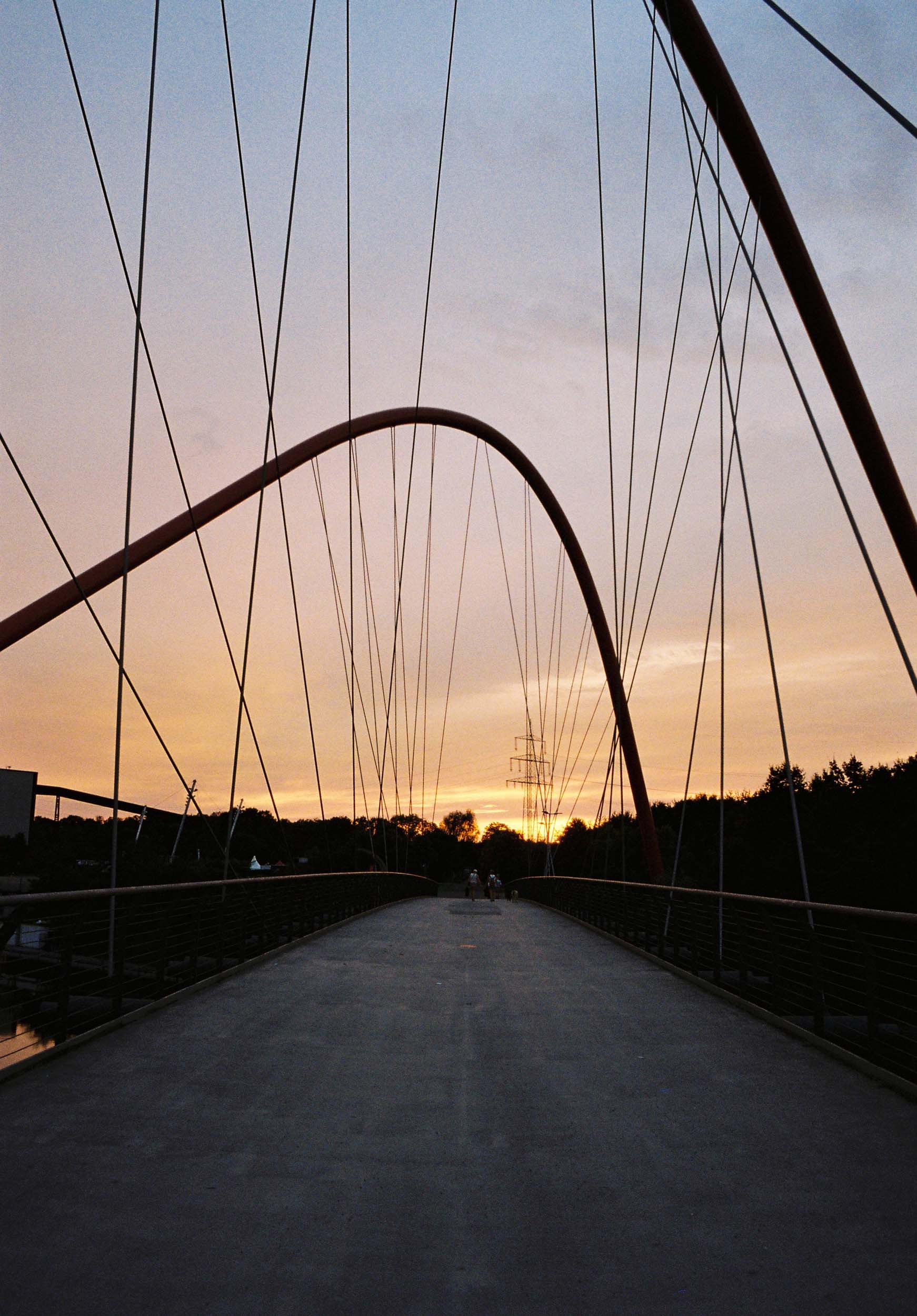 Mein liebster Ort zum Fotografieren sind die Brücken über die Emscher und den Rhein-Herne-Kanal. Der Anblick der roten Bögen und Seile über dem Wasser bei Sonnenuntergang, der die Industriekulisse in ein rosa Licht taucht, ist für mich der perfekte Abschluss.