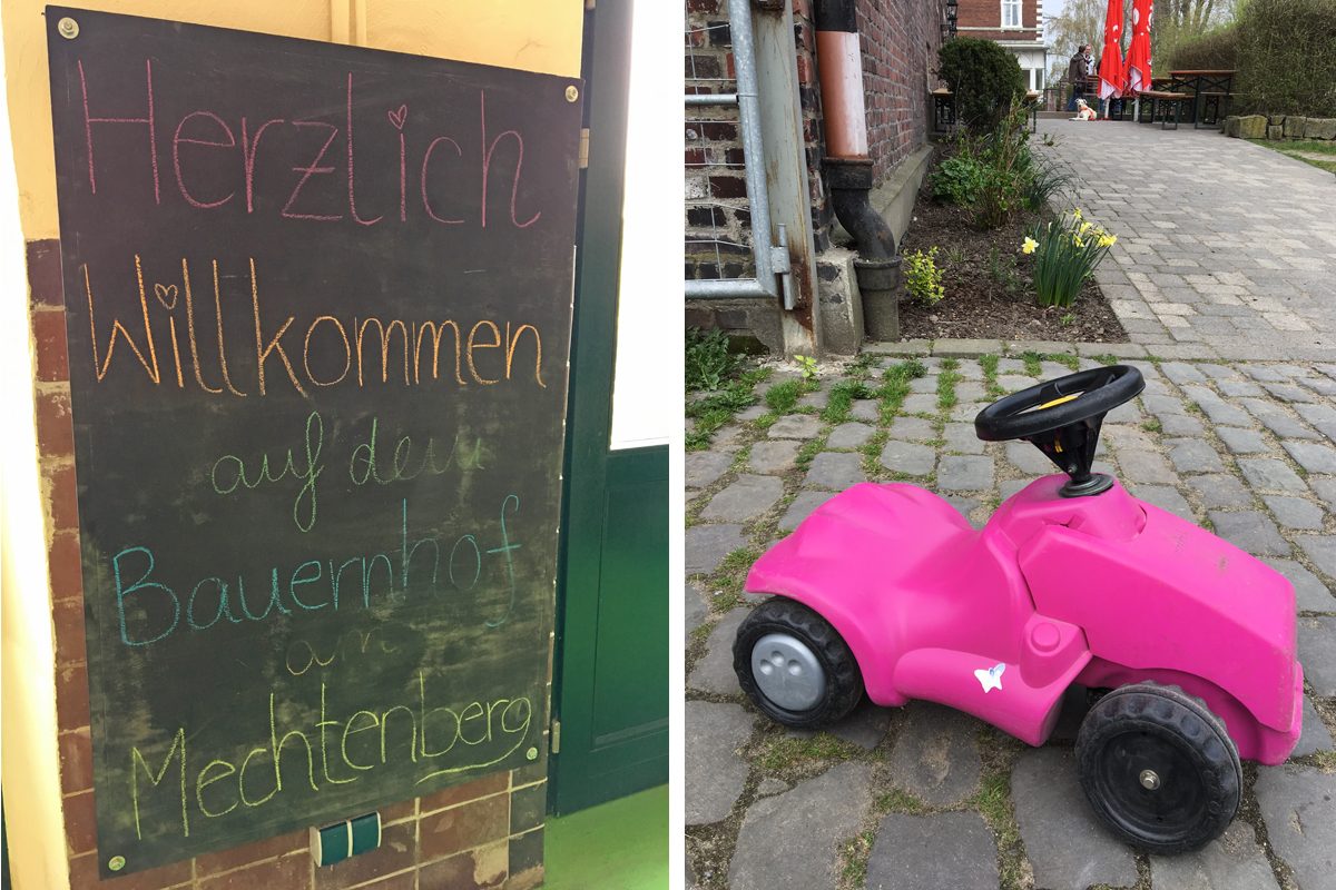 Im Grünen und doch mittendrin – der Bauernhof am Mechtenberg, sogar mit pinkem Rutscheauto für die ganz Kleinen