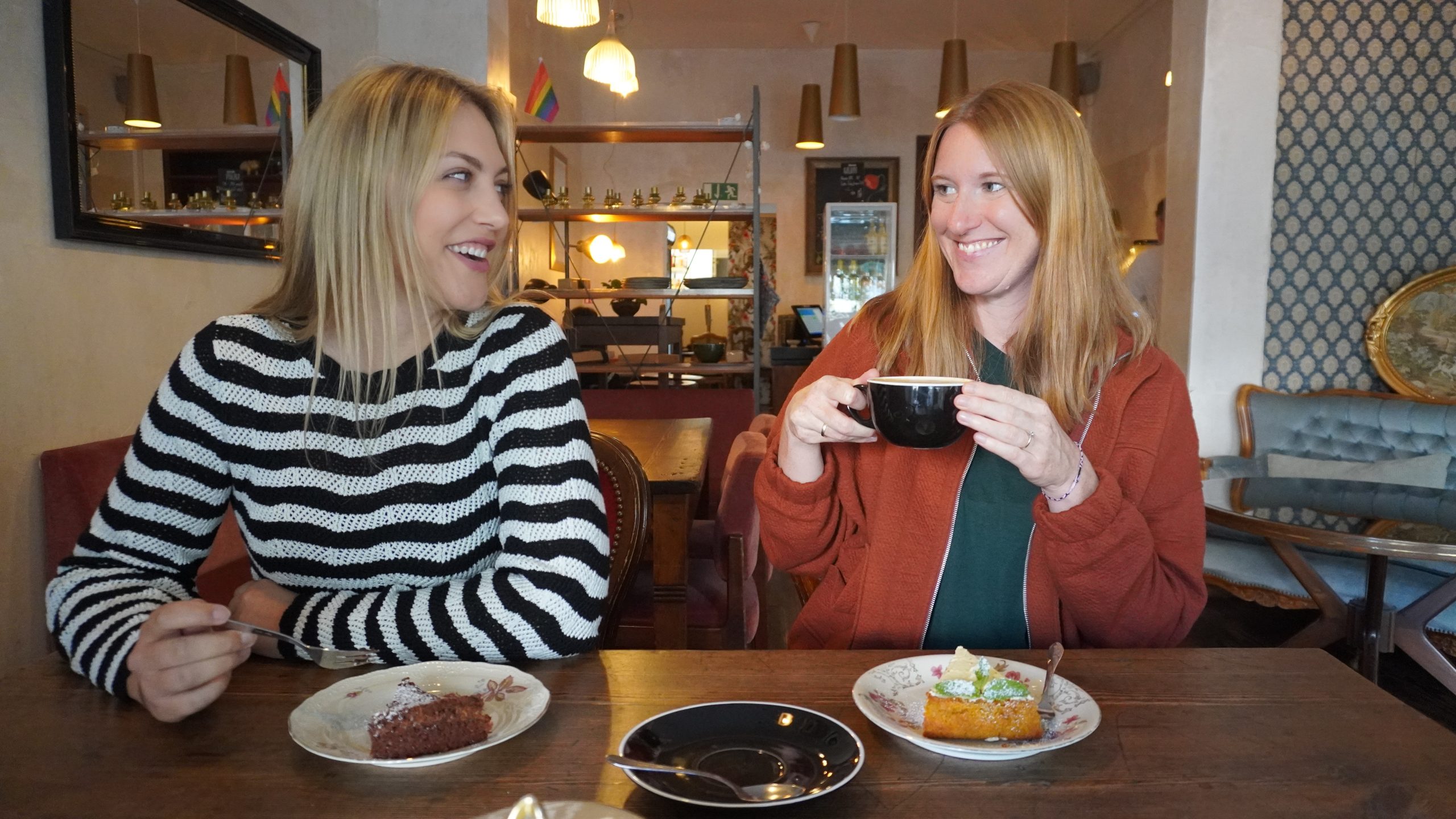 Beim Betreten des Cafés werden wir von Birgit direkt herzlich mit einem breiten Lächeln begrüßt. Die Sonne durchflutet den Raum, es duftet herrlich (es wurde gerade frisches Dal gekocht) und im Hintergrund läuft ruhige Musik. Wir machen es uns sofort gemütlich und bestellen leckeren Kaffee und Birgit´s hausgemachten Kuchen. Köstlich!
