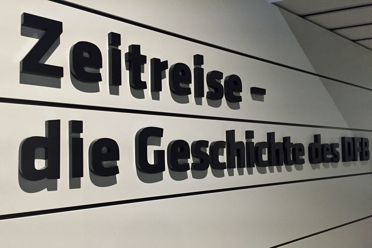 Los geht es mit jeder Menge Geschichte. Zeitungsartikel, Exponate, Fotos und Videomaterial erzählen die Geschichte des deutschen Fußballs aus der Zeit seiner Anfänge bis heute. Zugegebenermaßen finde ich keine Zeit, alles in Ruhe zu betrachten, denn das vierjährige Kind ist stets in Eile und fragt bereits vor dem dritten Schaukasten nach einem Eis.
