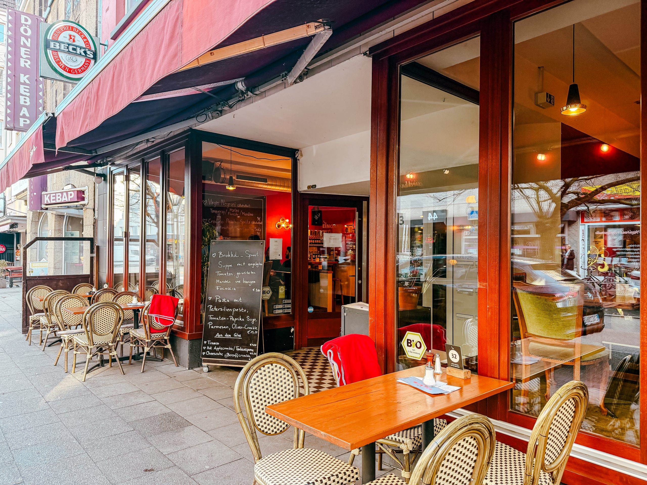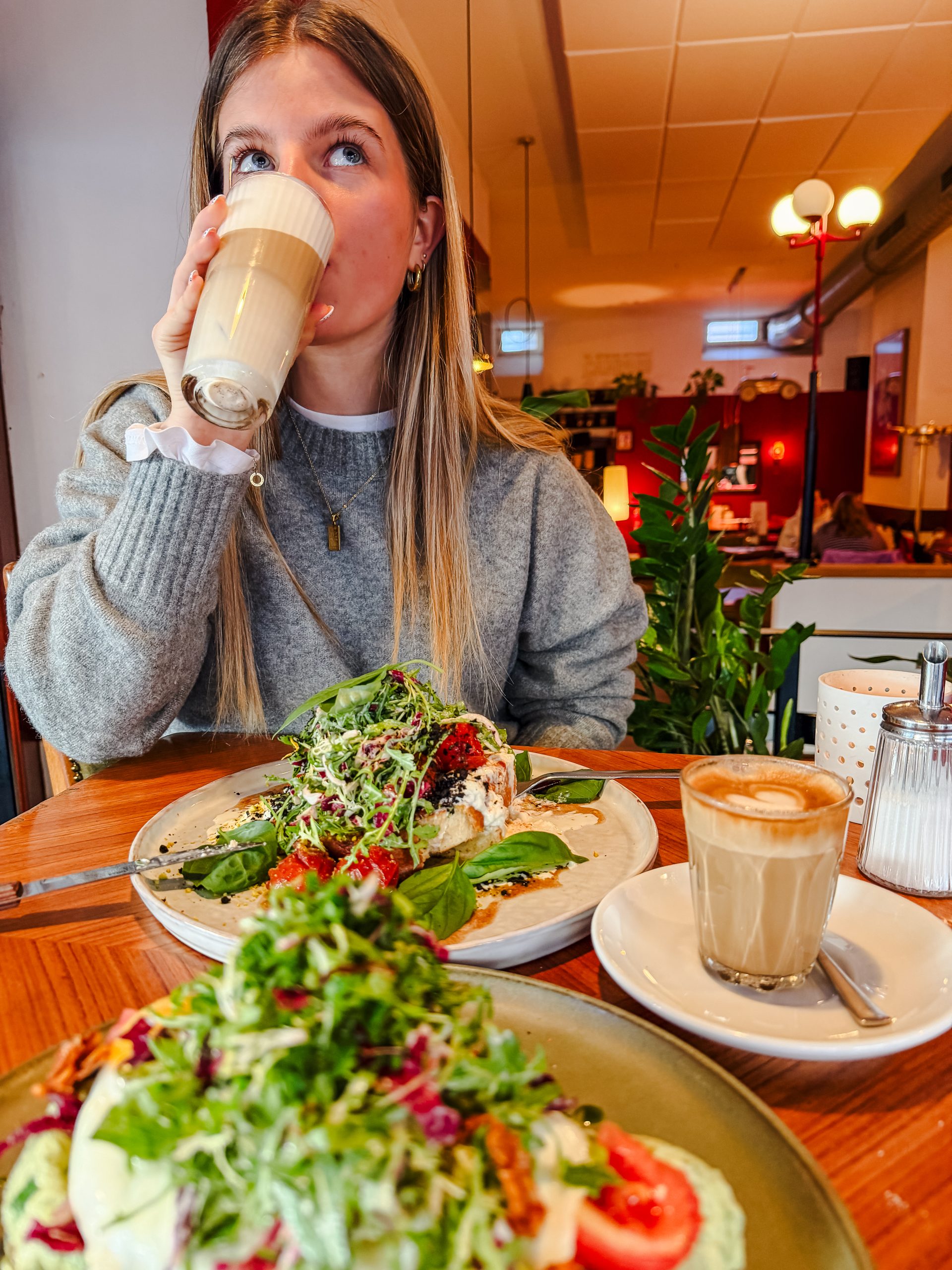 Ein weiterer Café-Spot ist die Zweibar auf der Rü, auch eine absolute Empfehlung! Wir waren dort zum Frühstück. Der coole Retro-Look mit den roten Wänden machts richtig gemütlich und lässt dich wie in einem französischen Bistro fühlen .