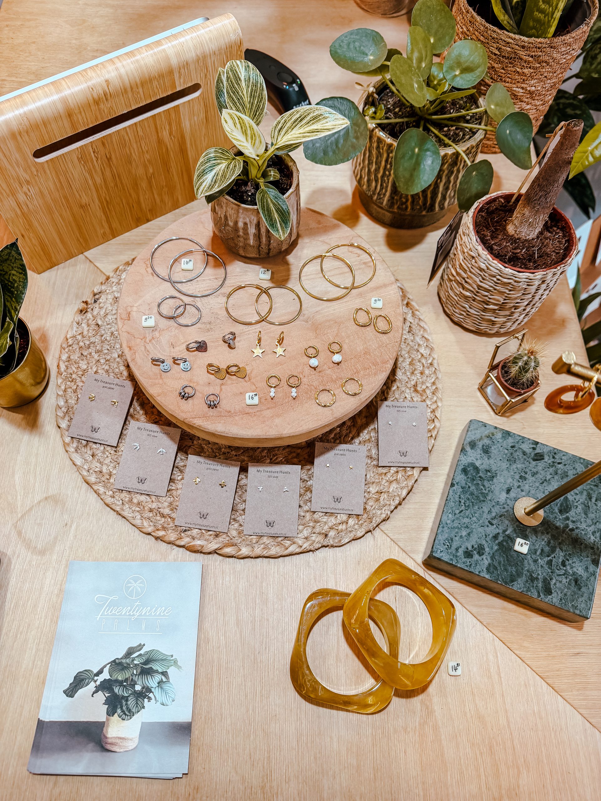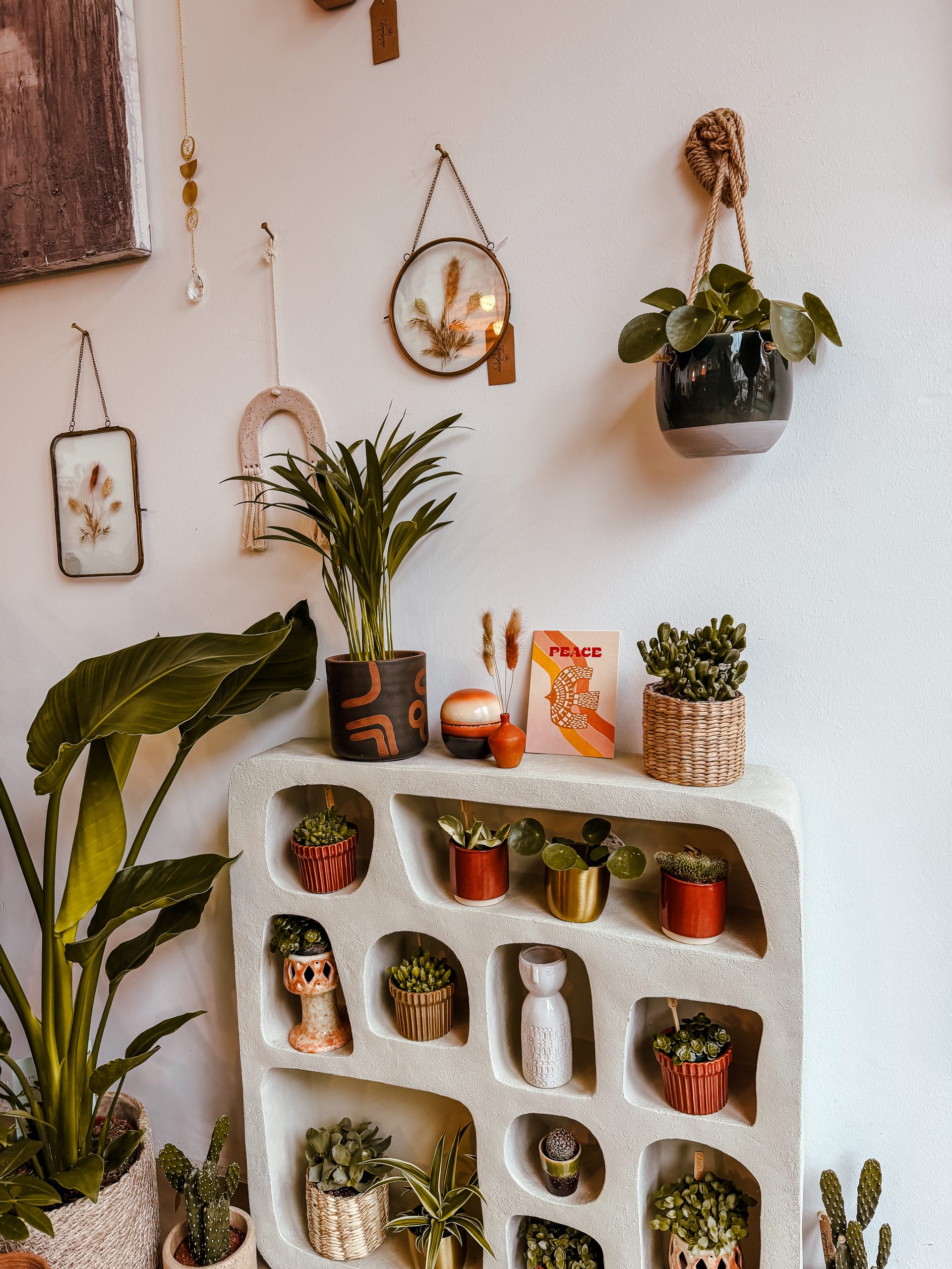 Auf den ersten Blick sieht man vor allem Pflanzen, aber wenn man genauer hinschaut, entdeckt man noch so viel mehr: Schmuck, Wohnaccessoires, Postkarten und viele andere Kleinigkeiten. Skandinavische und holländische Marken treffen hier auf lokale Designer.