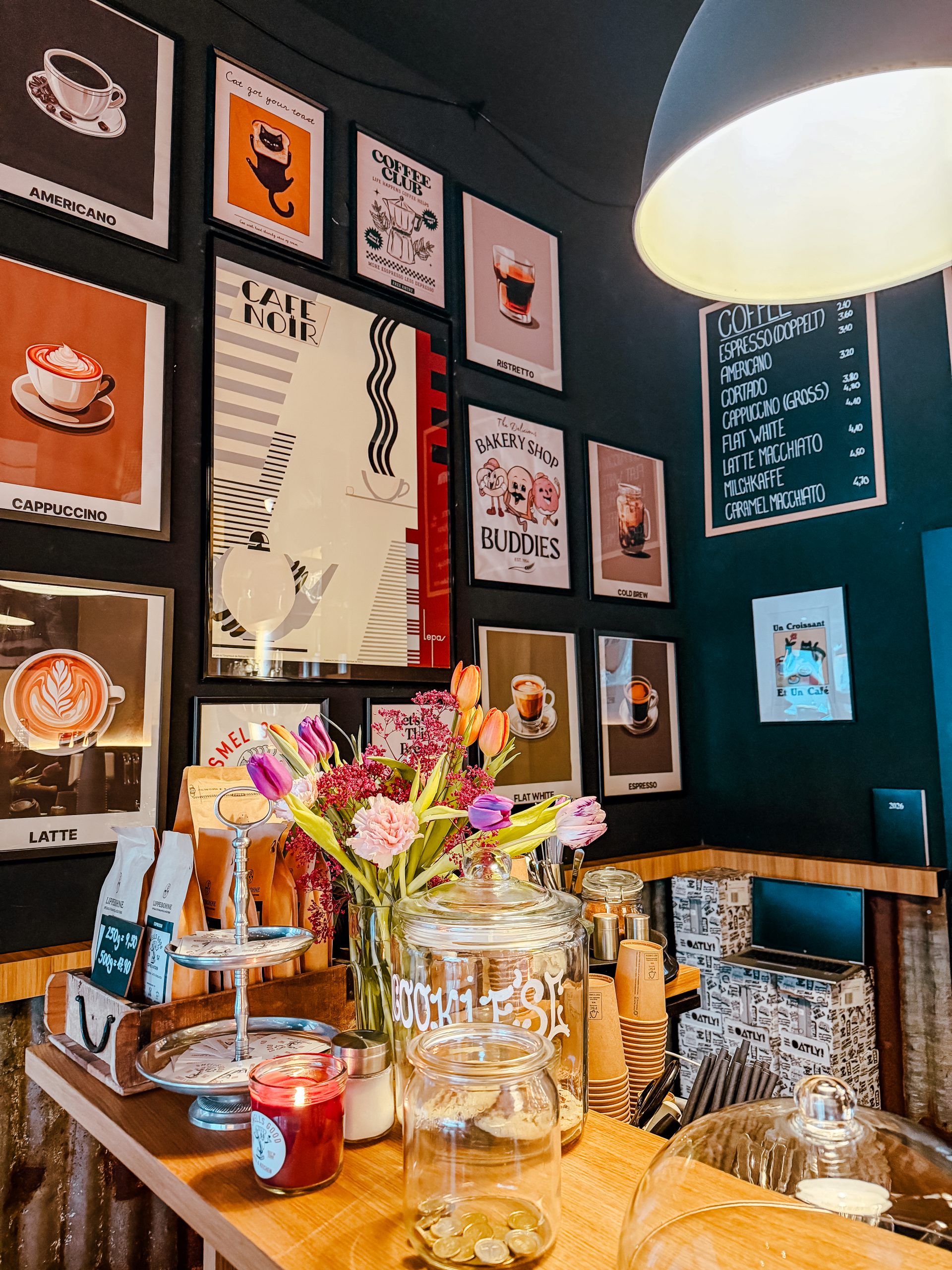 Neben den Getränken gibt es noch Kuchen, Frühstück und kleine Snacks. Besonders cool finde ich auch, dass delulu ein bisschen wie ein Concept Store funktioniert: Man kann zwischen Kaffee und Snacks hübsches Geschirr, Kerzen und sogar Vintage-Klamotten entdecken.