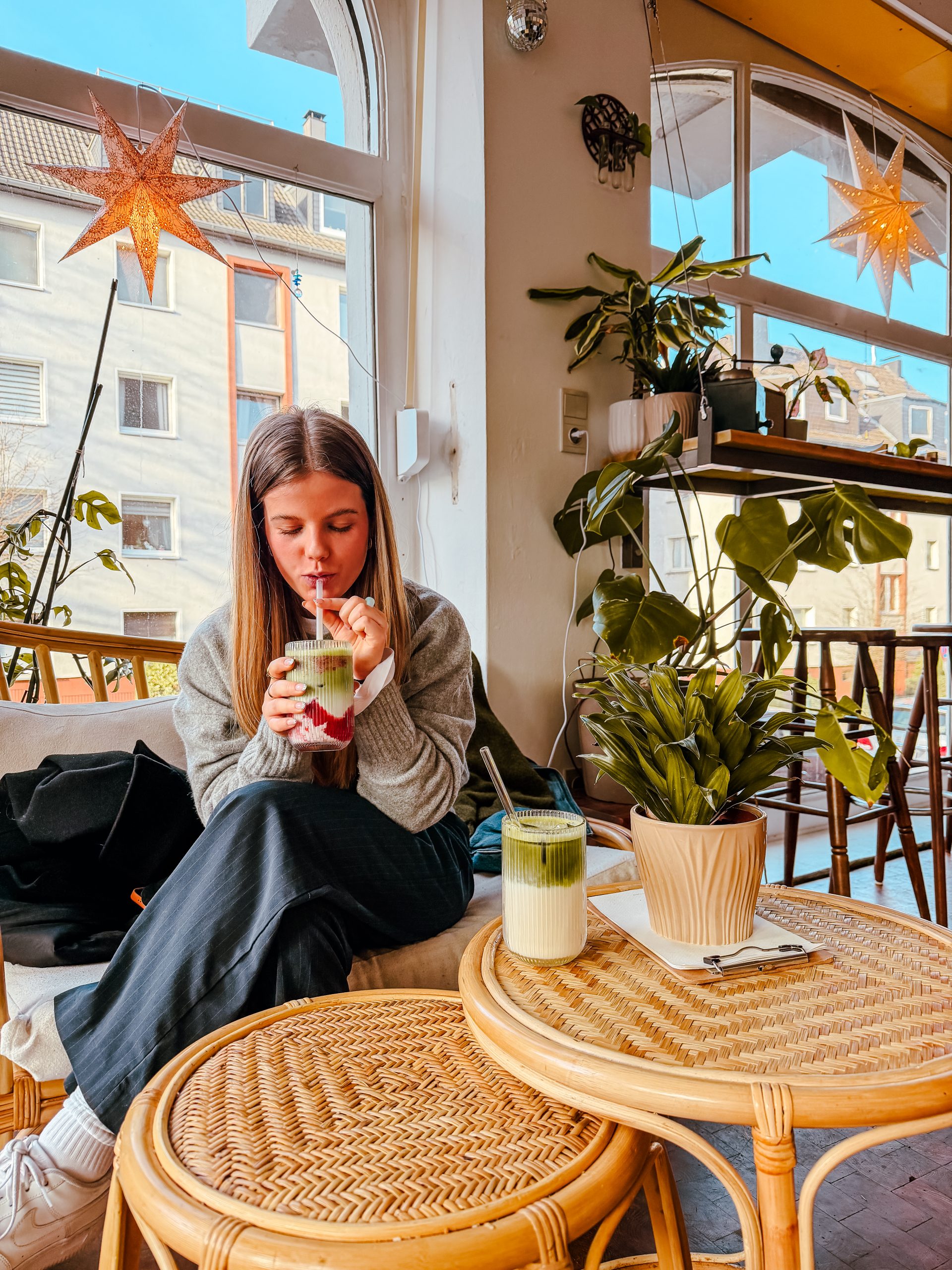 Wir hatten einen Iced Strawberry Matcha, einen Vanille-Kokos Matcha und dazu noch eine Zimtschnecke, die einfach KÖSTLICH war! Und jetzt mal ehrlich: Vor ein paar Wochen hätte ich noch gesagt, Matcha ist nix für mich – tja, falsch gedacht! Denn der Matcha hier hat mich endlich mal abgeholt!