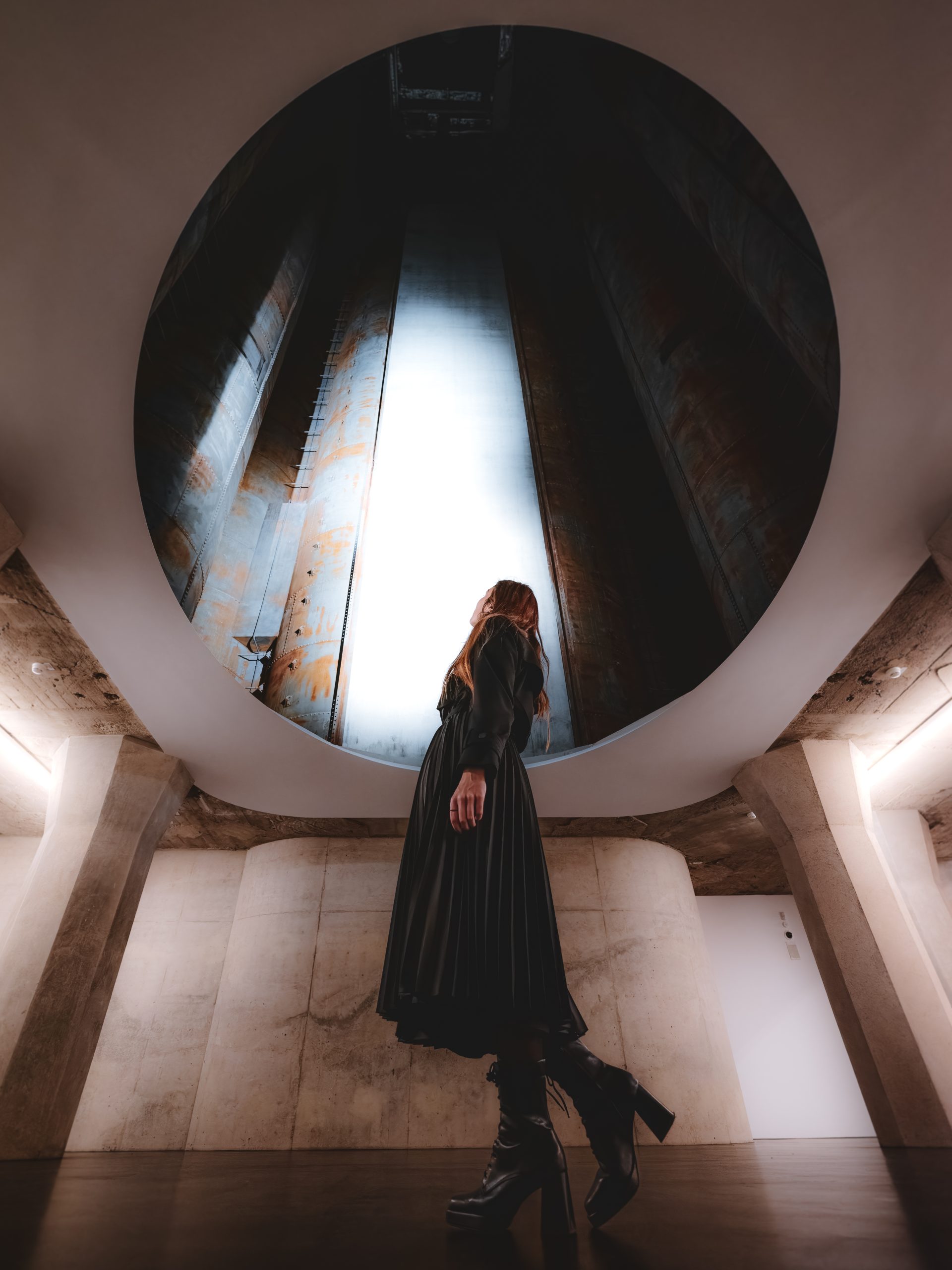Die Architektur des Gasometers ist dabei nicht nur Hülle, sondern selbst Erlebnis. Wer mit dem gläsernen Aufzug bis unter das Dach fährt, steht in luftiger Höhe – mit Blick auf das beeindruckende Innere der Halle oder hinaus über den Rhein-Herne-Kanal. Ein Ort, der Geschichte atmet und gleichzeitig Zukunft denkt. Fotografisch ist der Gasometer ein absoluter Hochkaräter – von außen monumental, von innen lichtdramatisch.