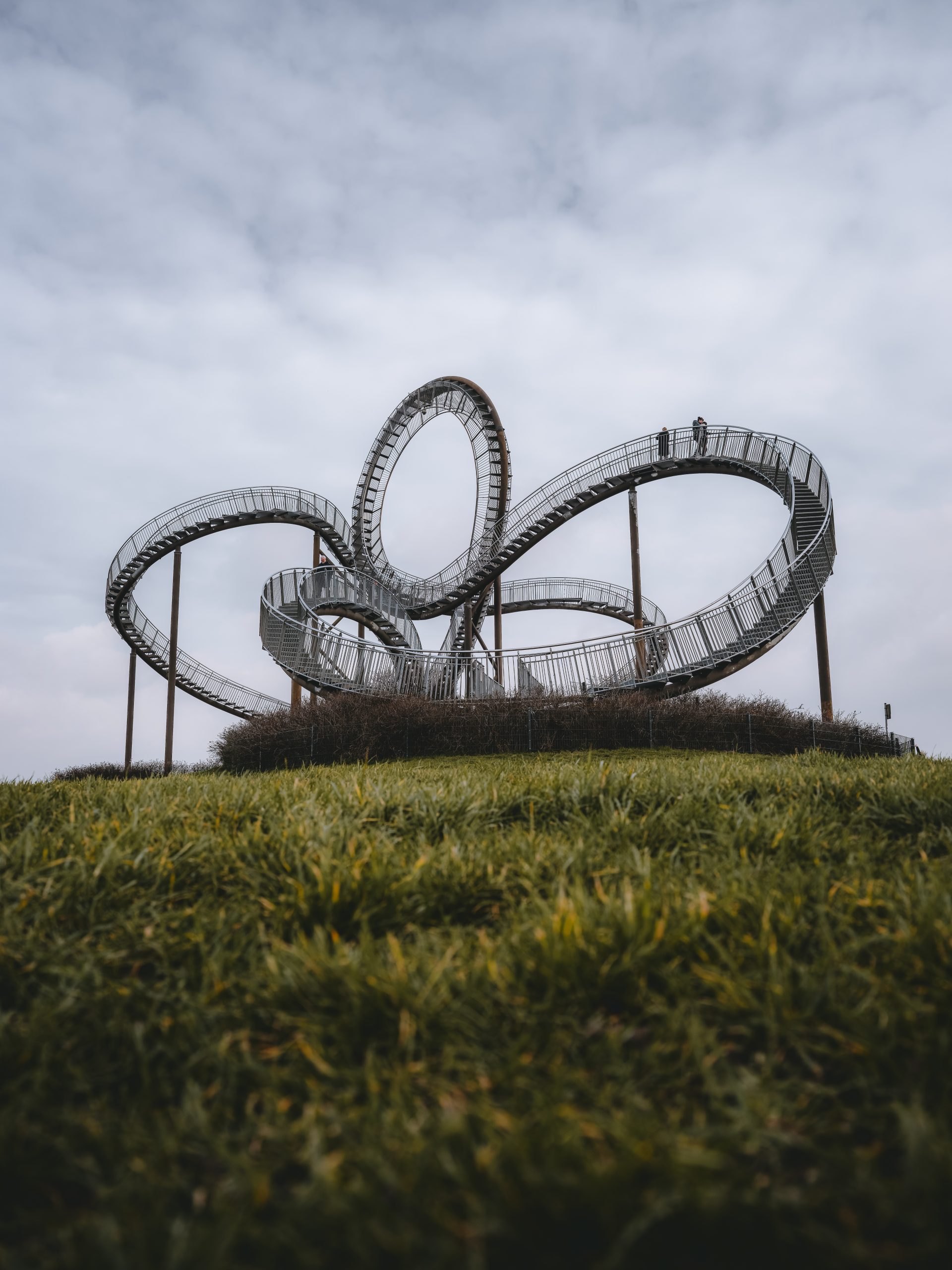 Was aussieht wie ein Freizeitpark-Highlight ist in Wahrheit eine Skulptur – und ein begehbares Statement. Tiger & Turtle – Magic Mountain auf der Heinrich-Hildebrand-Höhe in Duisburg-Angerhausen ist eines dieser Kunstwerke, die das Ruhrgebiet so einzigartig machen. Geschaffen wurde es im Rahmen der Kulturhauptstadt RUHR.2010, doch seine Wirkung ist zeitlos: Eine scheinbar fahrbare Achterbahn, die statisch bleibt und zugleich Bewegung ins Denken bringt. Der Looping bleibt unbetretbar, ein Bruch in der Bewegung – vielleicht auch ein Hinweis darauf, dass nicht alles im Leben geradeaus gehen muss. Abends zeichnet ein Band aus Licht die Struktur in den Himmel – futuristisch, poetisch, fast schwerelos.