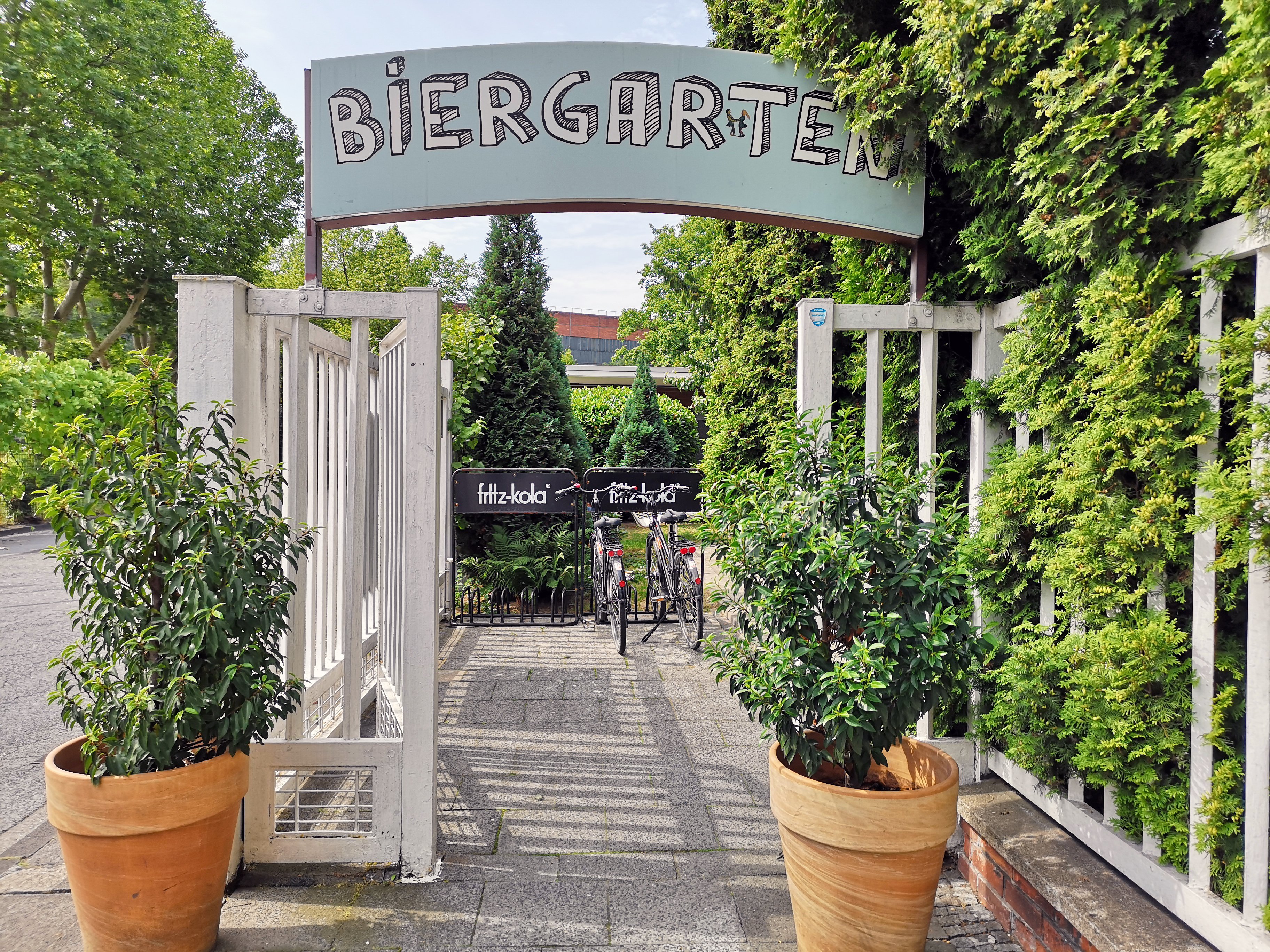 Nur knappe 15 Fahrradminuten, zunächst auf der Rheinischen Bahn zurück Richtung Mülheim und dann bis zum Abzweig Borbeck, vom Niederfeldsee entfernt liegt dieses „Naherfrischungsgebiet“ mit einem richtig großen Biergarten – bei so tollem Wetter wie heute natürlich ein Träumchen.