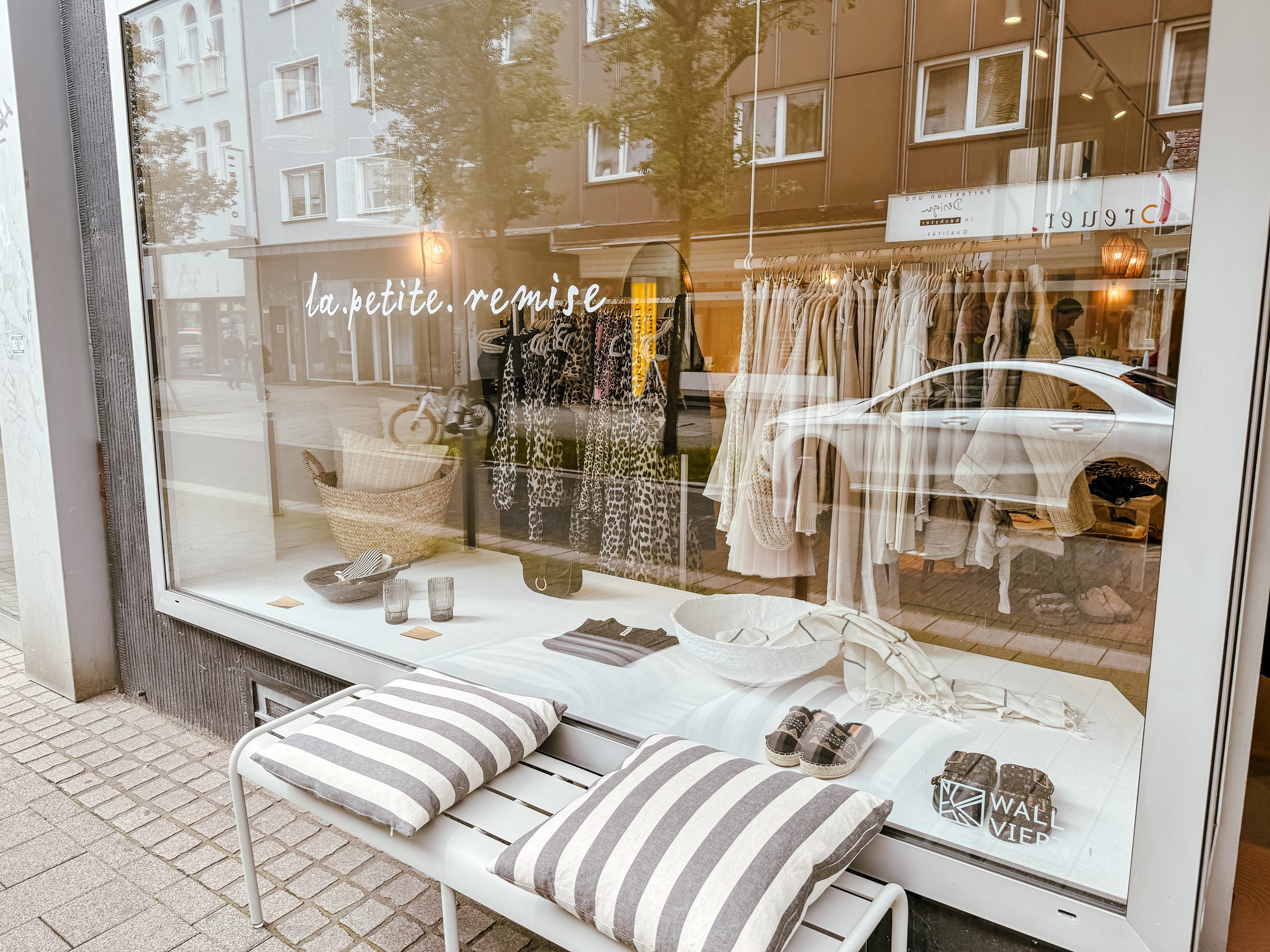 Zack, direkt um die Ecke kannst du auch etwas shoppen. Im „le petit remise“ bietet dir Besitzerin Tini schöne ausgewählte Kleidung (leichte Leinenblusen oder auch kuschlige Pullis), Schmuck oder auch ganz tolle Keramtik. Eine Kaffeetasse für Zuhause wandert da natürlich direkt über den Tresen.