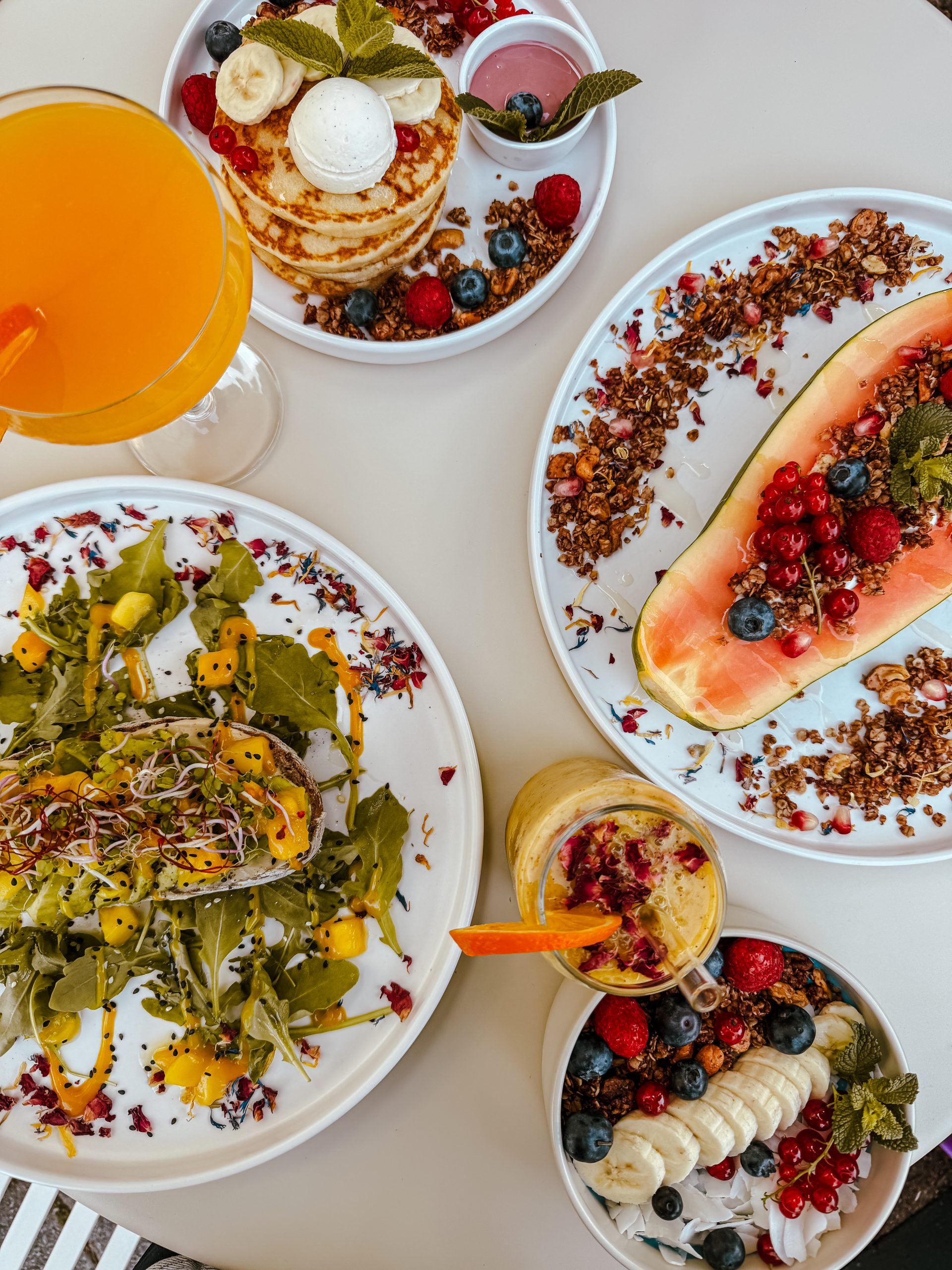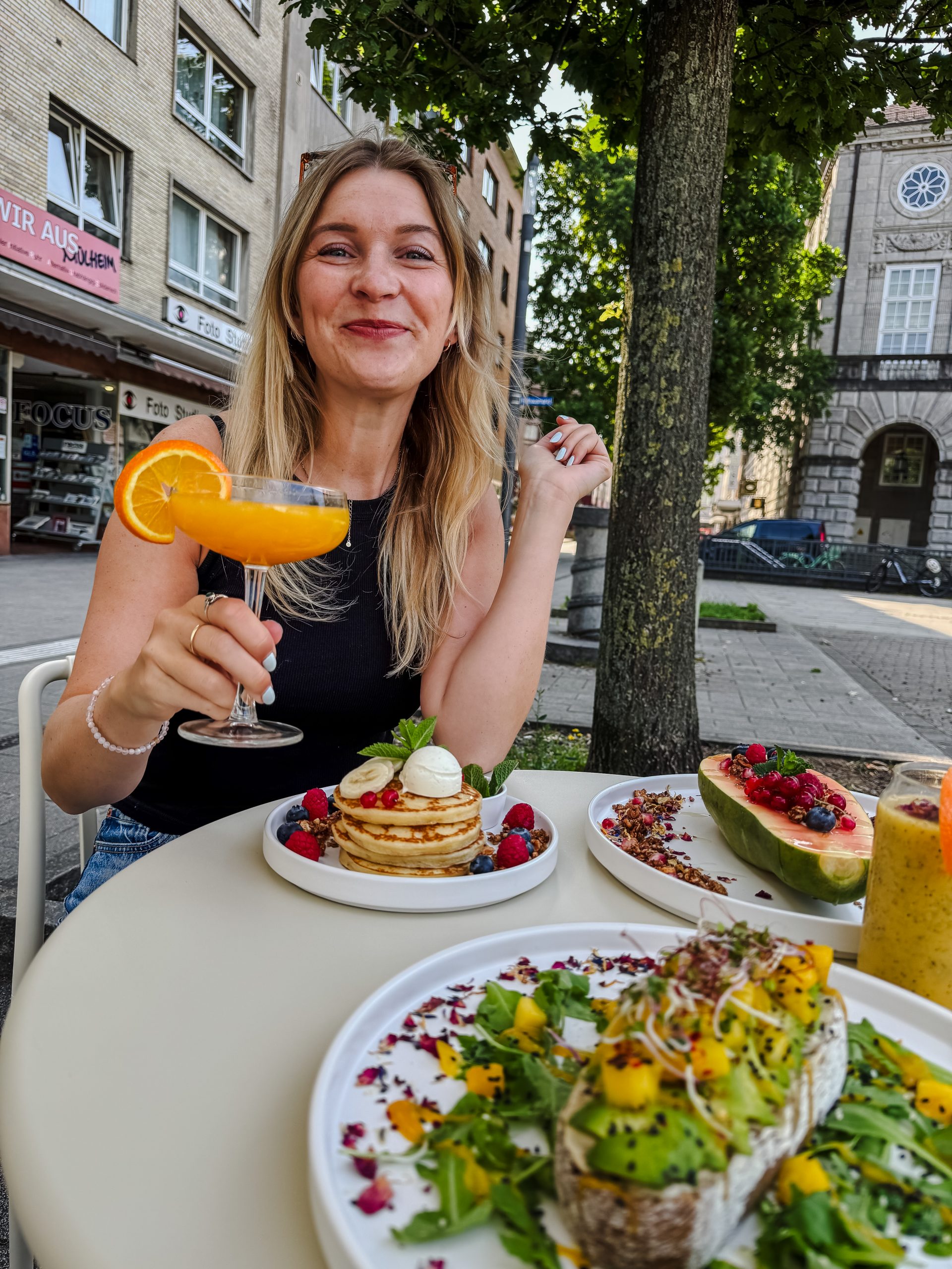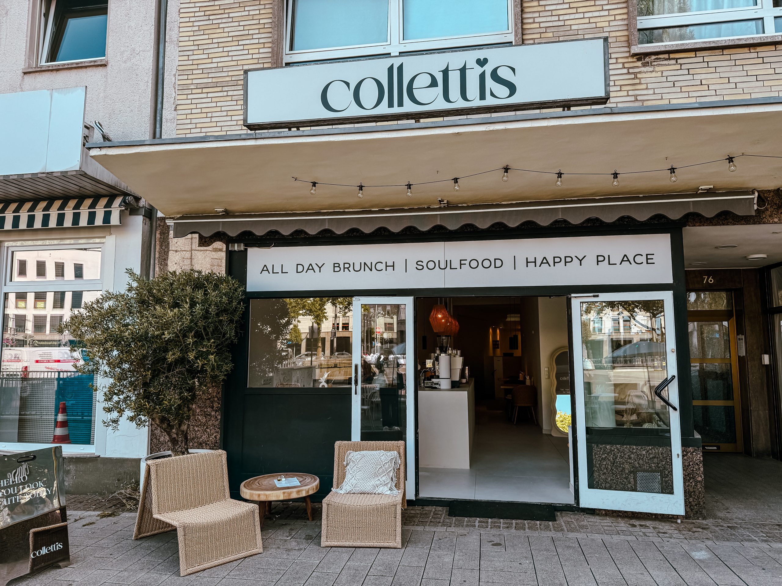 Im collettis gibt es wirklich seehr guten Kaffee und ausgefallene Speisen wie zum Beispiel – eins meiner Favoriten – eine halbe Papaya mit Kokosjughurt und selbstgemachtem Granola. Aber auch herzhafte Speisen etwa mit Burrata stehen auf der Speisekarte. Und natürlich: iced matcha latte strawberry! Unsere Wahl fällt auf das MoiMoi, weil wir Lust auf asiatisches Essen haben, aber schau mal, Leonie war letztens im collettis, sieht das nicht gut aus?