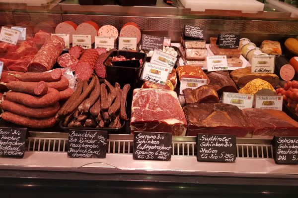 An der Frischetheke ist neben Schwein auch Rind auch Lamm und Geflügel in Bioqualität erhältlich. In den Regalen finde ich eine große Auswahl an Gewürzen, Säften, Milchprodukten, Tees und während ich durch die Gänge schlendere entdecke ich sogar ein ganzes Regal voller Bio-Wein – i Like. 😉