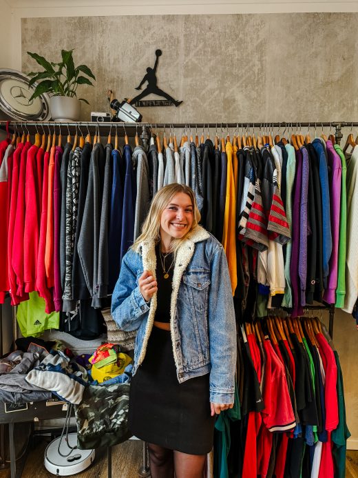 Mir fällt vor allem auf – denn ein bisschen Second Hand Erfahrung habe ich langsam – welche gute Qualität die Sachen hier haben. Kein Fleck, keine kaputten Stellen. Dafür sucht Markus die Sachen extra selber aus. Zudem findest du hier viele Vintage-Schätze wie z. B. diverse Sportbrands original aus den 80ern/90ern. Es gibt aber auch Stücke für den kleineren Geldbeutel, die nicht Vintage sind. Außerdem eine Ecke nur mit Jeans aus den 90ern und Y2K. Zudem gibt es noch Geschenkideen wie z. B. Aufnäher, Kosmetikprodukte oder auch ausgefallene Krawatten.