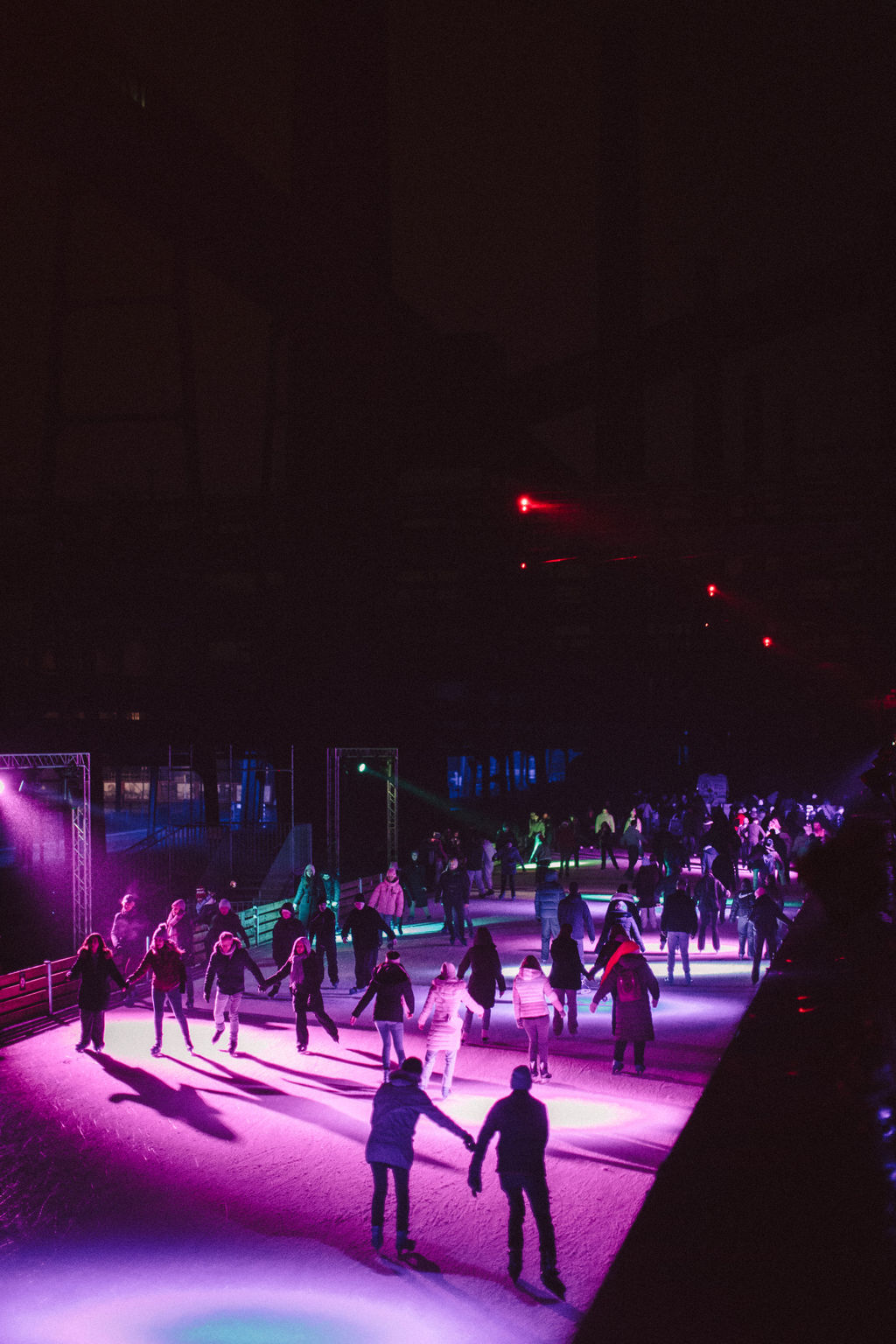 Die beleuchtete Industriekulisse der Kokerei Zollverein lädt mit rund 1.800 Quadratmeter Eisfläche zu einem super Erlebnis auf dem Eis ein. Vor ungefähr 40 Jahren wurde hier noch Kohle bei 1000 Grad zu Koks gebacken. Heute ist das nicht mehr so, aber das wertvolle kulturelle Erbe bleibt uns zum Glück trotzdem erhalten. Während du also gemächlich auf dem Eis deine Runden drehst, kannst du in Ruhe die alte Industriekultur bestaunen.